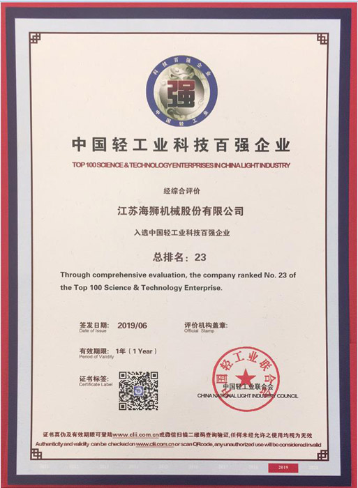 會議宣讀了中國輕工業(yè)百強企業(yè)評價公告,同時為中國輕工業(yè)百強企業(yè)頒發(fā)牌證,江蘇海獅機械股份有限公司作為洗滌行業(yè)領先企業(yè),榮獲了“中國輕工業(yè)裝備制造行業(yè)三十強企業(yè)”、“中國輕工業(yè)科技百強企業(yè)”稱號,同時,在洗滌機械行業(yè)十強企業(yè)排在首位。